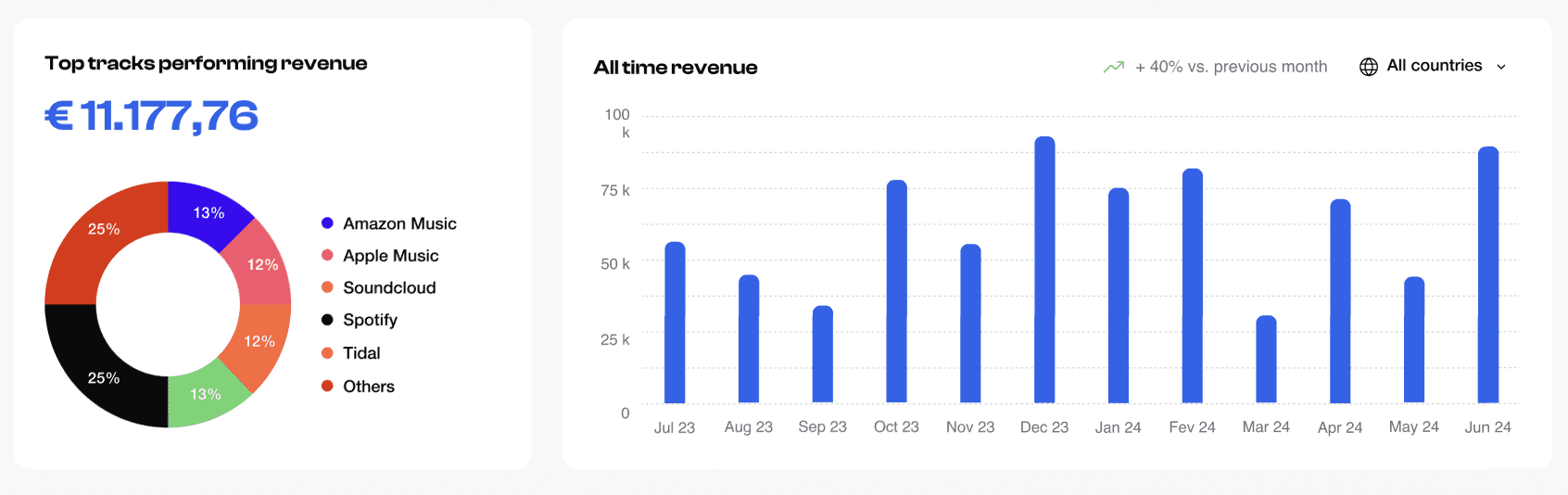 Your distributor only collects part of your earnings. A digital distributor mainly collects master royalties. Bridger collects the missing part — from online and offline uses — and helps you increase your revenues by 25%.